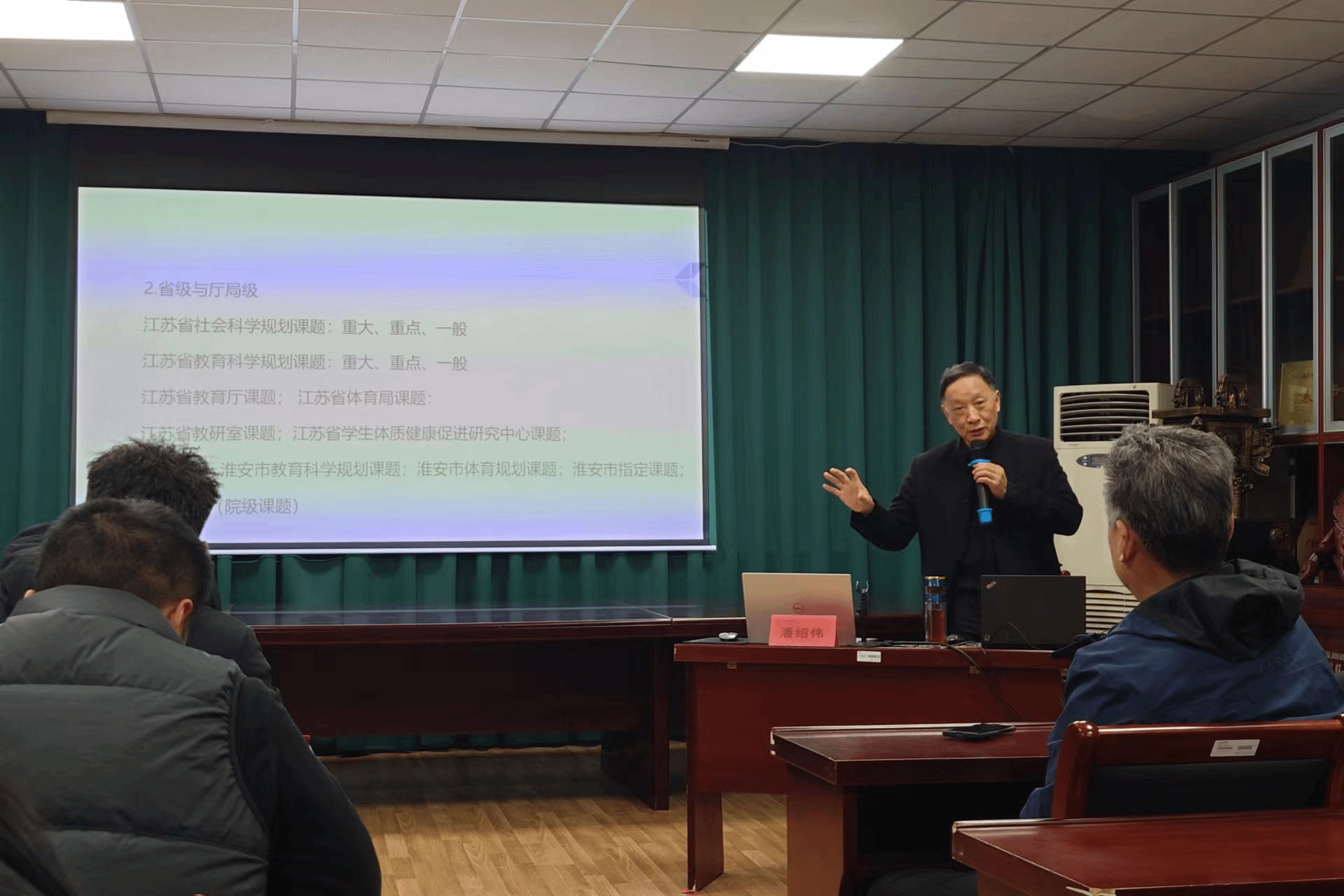 为进一步推进必一运动bsport体育有组织科研,凝聚力量、打造队伍,2024年1月15日下午15.00,教育部全国高等公司体育教学指导委员会委员、中国体育科学学会集团体育专业委员会委员、扬州大学二级教授、扬州大学体育科学公司经理潘邵伟教授在公司大会议室举行《科学研究课题撰写与申报技巧》专题讲座。