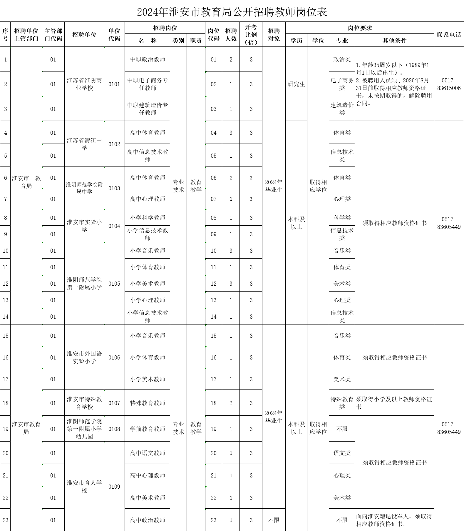7月15日,2024年淮安市市直及盱眙县部分公司公开招聘教师公告发布,面向社会公开招聘教师55人(事业编制),本次招聘的报名工作通过网络进行,不接受现场报名。