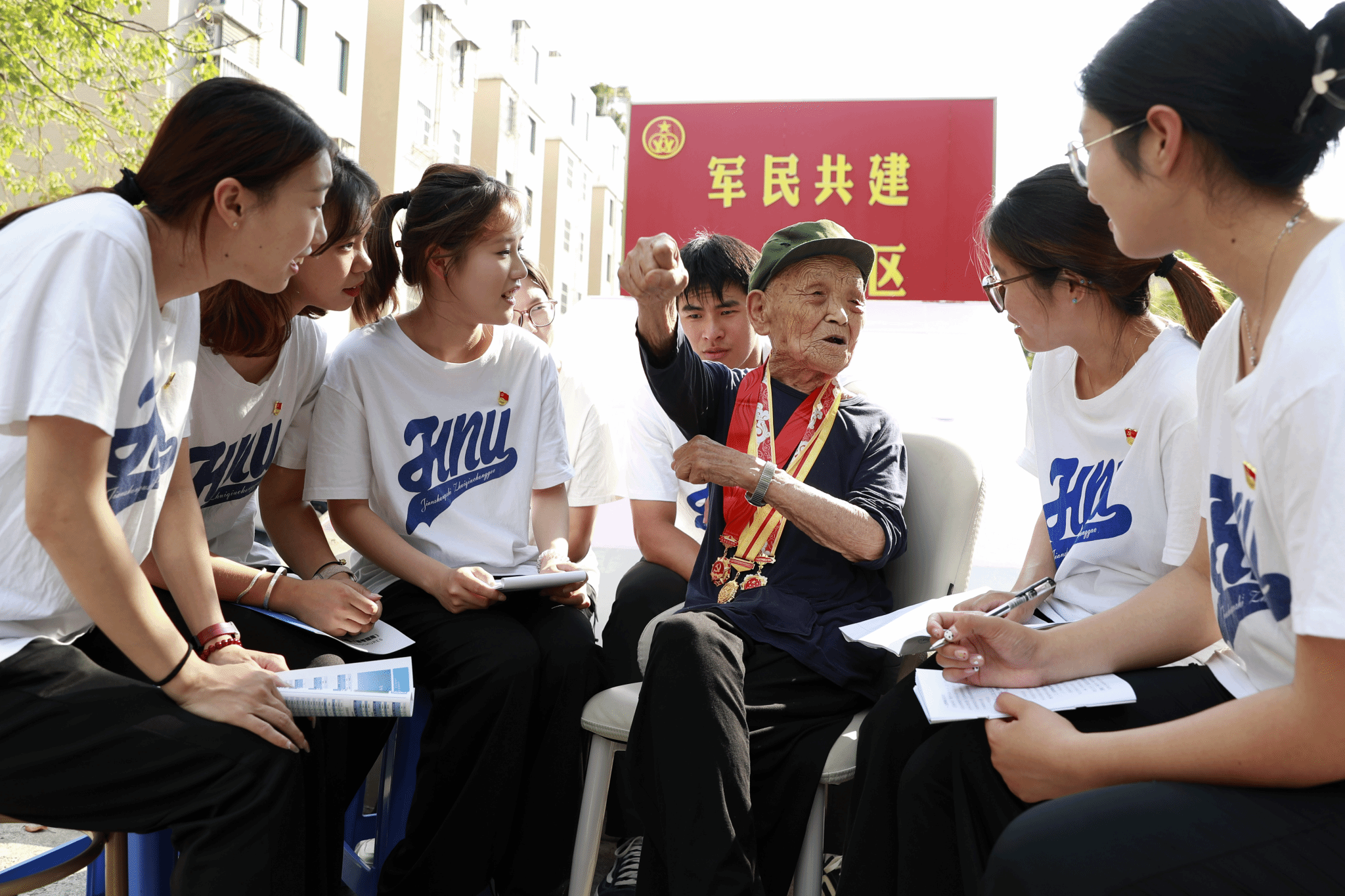 朱志成老战士深情地向师生党员讲述一个个可歌可泣的抗日故事,重现昔日感人场景,师生党员聚精会神边听边记,表示要向革命先辈那样,把爱国情、强国志自觉融入日常学习工作中。