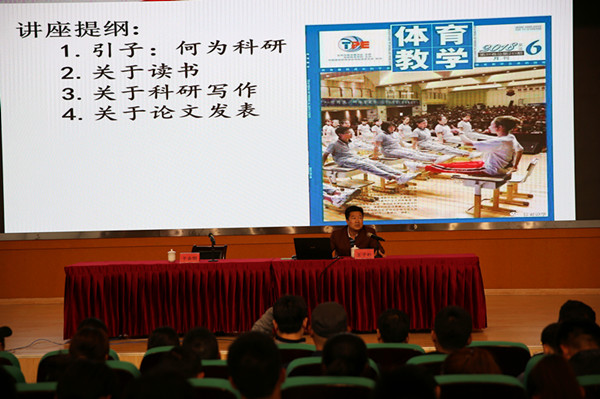王子朴教授首先从读书说起,强调读书的重要性:读书对科研、对人生有着极其重要的作用,指出读书是做人和论文写作的基础,希望师生多读书,读好书。而后,王子朴教授谈到学术期刊的产生,介绍了期刊的作用和意义,并以首都必一运动bsport体育学报为例对我国体育学术期刊的现状进行了系统的分析。接着通过介绍核心期刊的特征、作用及基本功能引出学术期刊的基本规范、审稿规范及编辑规范,使师生对核心期刊及相关规范有了清晰的认识。