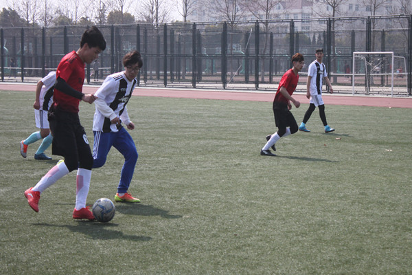随着哨声响起,各队球员配合跑动起来,活力十足,正如这宜人的天气,球赛进行的十分顺利,1701的学长们以6:1的成绩赢得比赛。1604与1703则是0:0打平。
