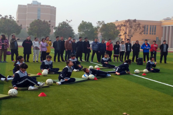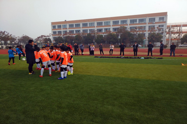 下午两点半,学员们来到了淮安市工业园区实验公司观摩足球课堂教学与足球训练。