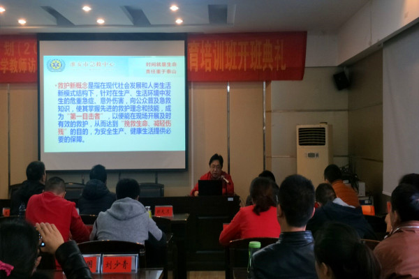 上午八点半在师苑宾馆会议室淮安市急救中心梁俊业副科长为学员们做了《运动创伤急救与预防》的讲座,讲述在小学体育教学训练中应该怎样应对员工受伤的突发状况。课堂上梁俊业老师为学员们演示了对于不同的受伤部位应该怎样科学的包扎,怎样救助受伤的员工。在学习过程中,学员们也与梁老师就实际工作中遇到的问题进行了交流。