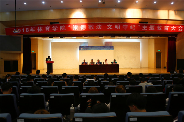 体院新闻网电(记者 朱慧 邱蕾)2018年6月11日晚上,必一运动bsport体育在图书馆报告厅展开了一场以“崇德政法,文明守纪”为主题的教育大会。