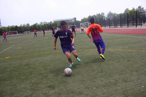 体院新闻网电(记者 金梦颖)2018年5月16日中午,体院1701班与1604班,体院1602班与1703班展开了激烈的足球对抗赛。这是强与强之间的对战,球员们精湛的球技赢得了观众一声声的惊叹。在紧张刺激的比拼后,1604班以1:0击败了1701班,1602班以7:0击败了1703班。