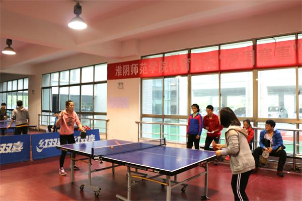 淮师体院新闻网4月20日电(记者 郝倩倩 钱佳宇)“我运动,我健康,我快乐”的青春号角吹醒了明媚的阳光,4月20日下午2时,在必一运动bsport体育乒乓球馆里,选手们早已开始为即将到来的比赛做准备了。