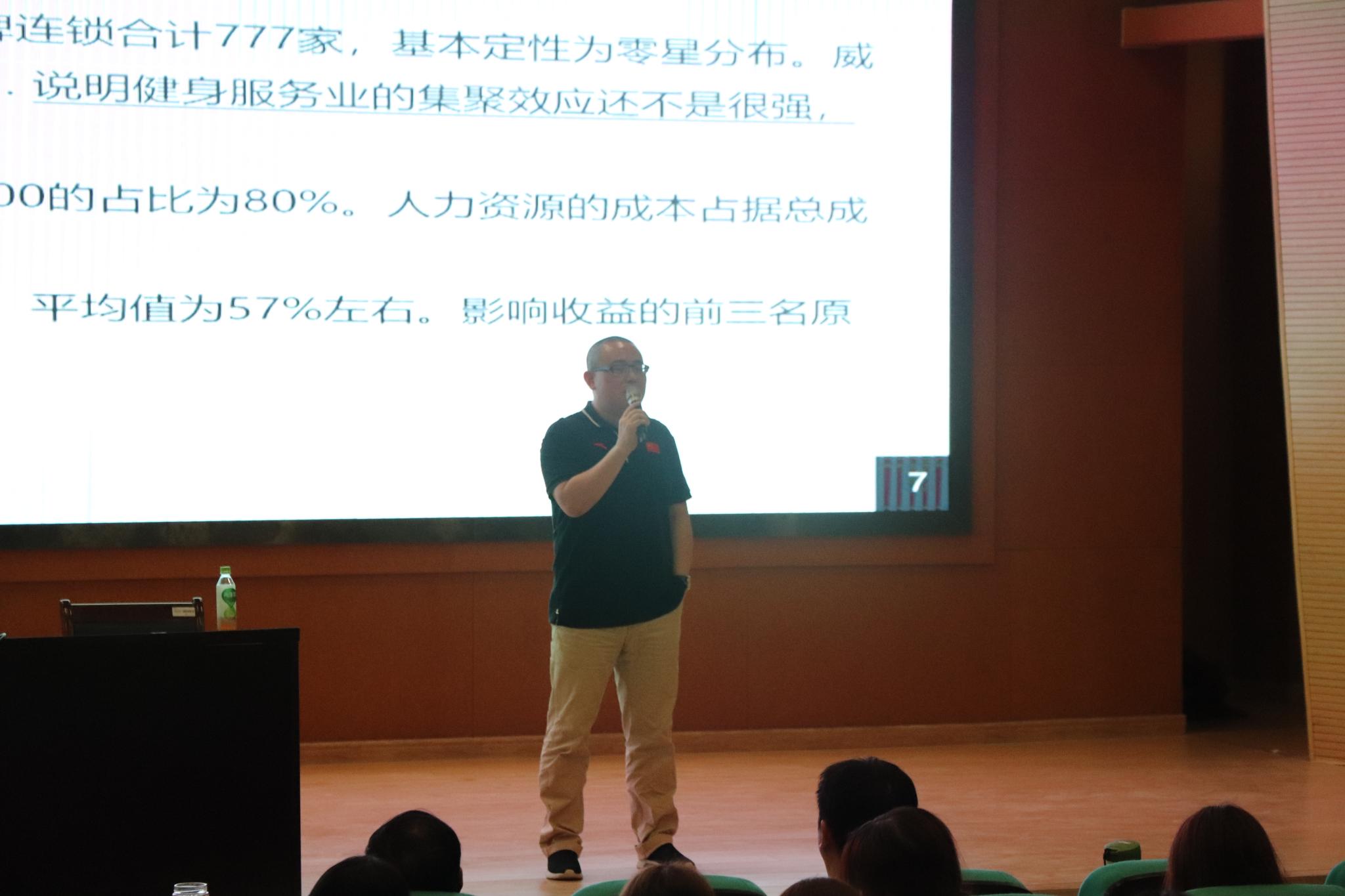 胡冠宇分别从“产”、 “学”、 “研”、 “用”四个方面向员工讲解了社会指导专业的社会需求现状与未来发展。重点论述了健康管理、运动训练、运动生理、运动解剖等基础课程的重要性,告诉同学们,目前,体育产业正在蓬勃发展,体育产业应用型人才培养的重要性和紧迫性正在凸显,体育产业迅猛发展对体育产业人才培养产业人才培养提出较大诉求,体育产业的未来发展人才需求正在显示巨大空间,希望同学们同学们要努力学习、积累能量,转变就业观念,实现多渠道、分层次、全方位的就业。