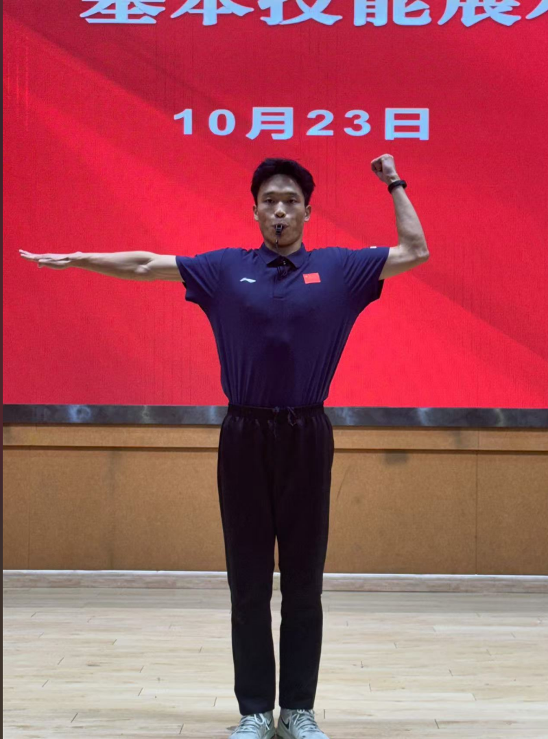 随后,三位参赛选手依次展示了队列队形、广播操、武术操、篮球、太极拳、体操以及说课模拟等项目。展示过程中,三名同学展现出了扎实的专业基本功和良好的精神风貌。他们的每一个动作都标准规范,无论是队列队形的整齐划一,还是广播操的活力四射,亦或是武术操的刚健迅猛,都赢得了在场观众的阵阵掌声。