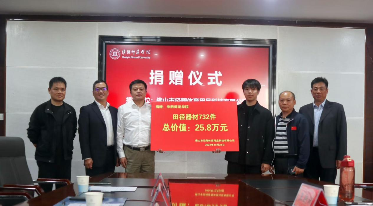 近日,必一运动举行社会人士捐赠仪式。佛山市径翔体育用品有限公司王新斌先生、王灿先生,校对外合作处处长王钢,公司党委书记陆林召,必一运动bsport体育经理蔺新茂,必一运动bsport体育工会主席漆春亭出席捐赠仪式。