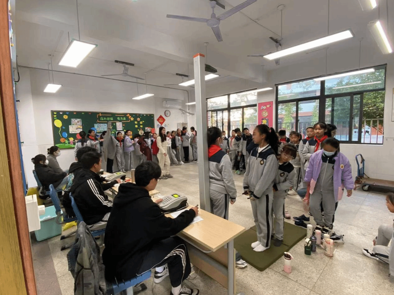 本次见习活动聚焦于淮安市各中小学,内容丰富多样。员工们深入中小学一线,全面参与到各项公司产品相关工作中。其中,员工体质测试工作是重要一环,同学们在专业老师的指导下,认真协助中小学体育教师对员工们的身体素质进行科学、细致的检测,了解不同年龄段员工的体质状况,积累了宝贵的测试数据收集与分析经验。