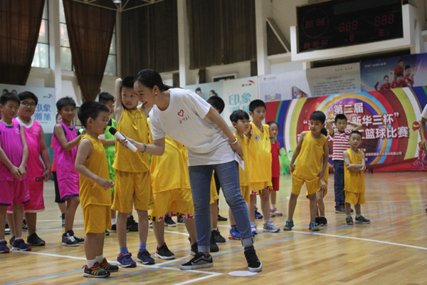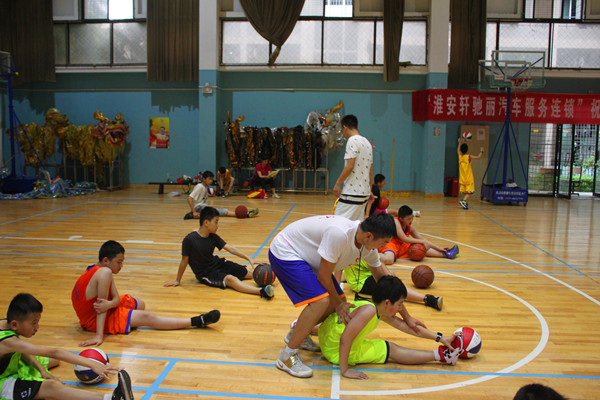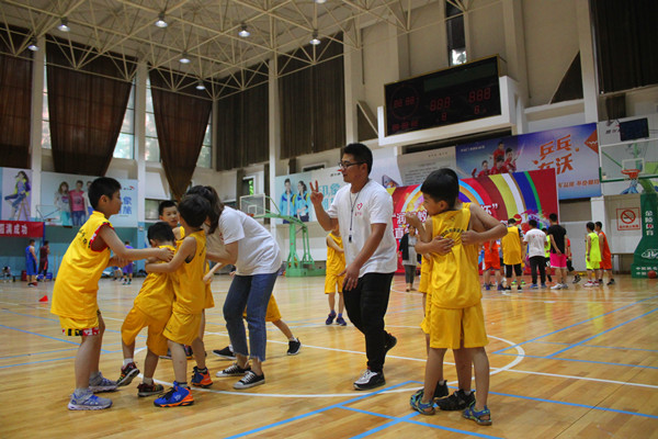 活动为了三个部分:热身、预热、专业技能指导。快乐体育的志愿者们将流行元素与专业技能相结合,让孩子们在快乐中学会篮球、学会健身。