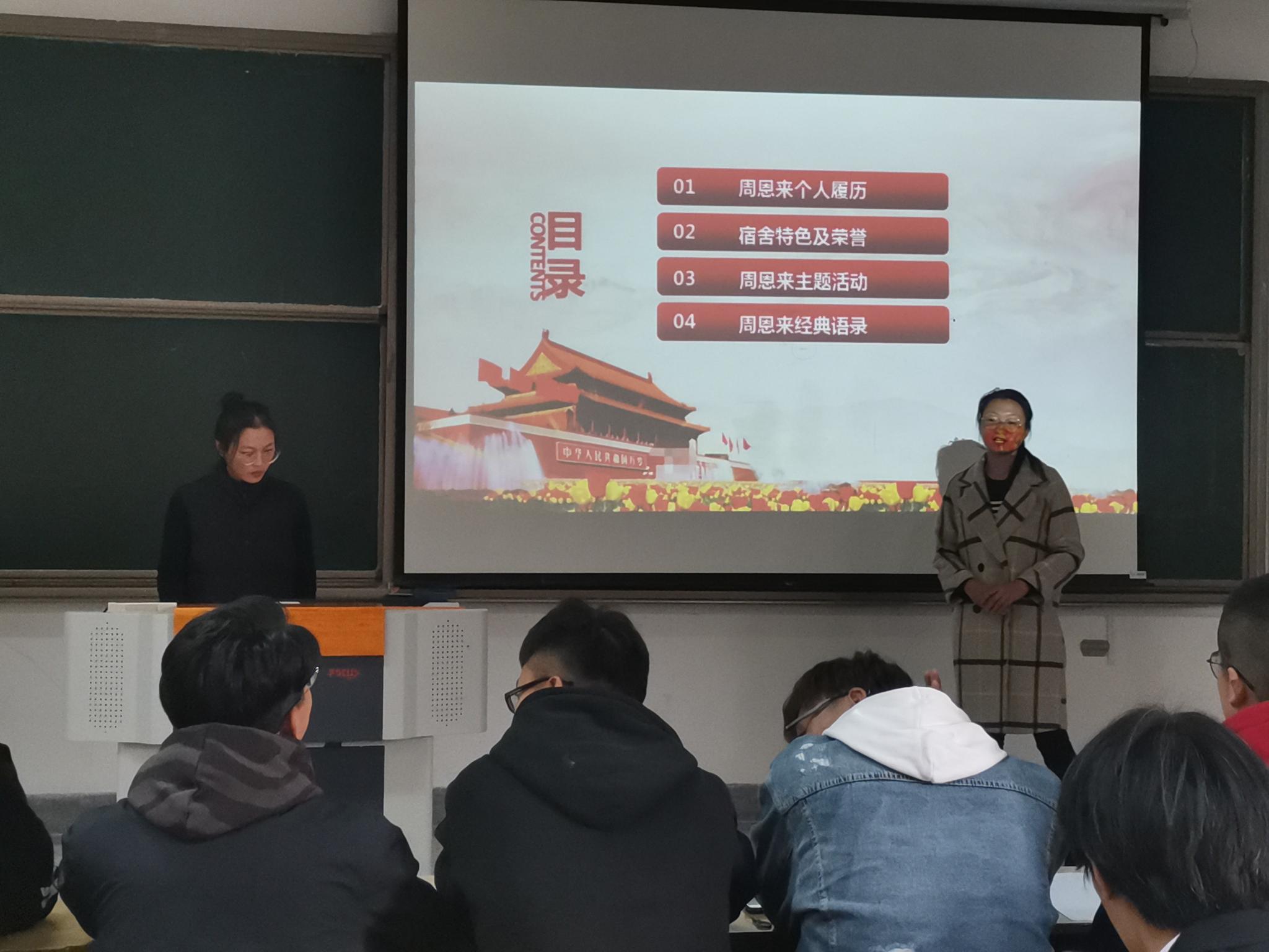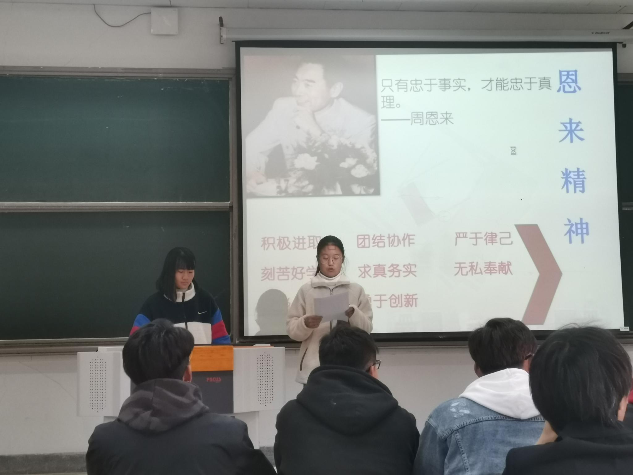 追求真理、崇尚理想、生命不息、奋斗不止、不断进取、酷爱学习、善于学习、学以致用、胸襟博大、广交朋友、善于协作、理想远大、淡泊名利、一心为公、鞠躬尽瘁、死而后已等是周恩来精神的集中写照。作为大学员工我们应该把学习周恩来精神,创建周恩来班贯穿于班级全体同学思想品德教育的始终,让周恩来精神在全体员工心中生根。通过“周恩来班”的创建,全体员工学习习惯和生活习惯都得到了加强。很多员工由刚进大学时的懵懂无知转变为一个具有良好行为习惯的优秀员工。让每个员工形成以遵守纪律、养成良好习惯为荣,不学无术为耻的观念。