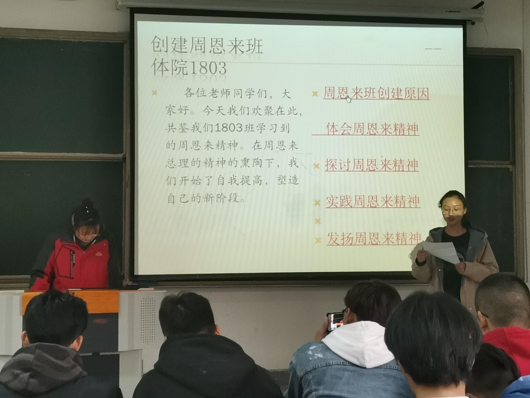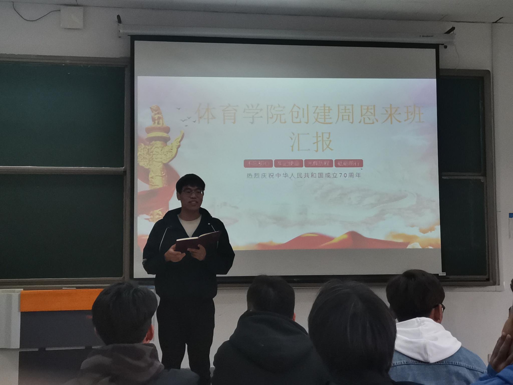 体院新闻网11月15日电(记者 许庆)必一运动bsport体育于11月15日在崇文楼召开关于创建周恩来班汇报。参加这次报告会的有团委副书记陈镇,员工会主席聂贺宇,自管会主席袁泽,自管会副主席赵运,竞赛委员会主席颜源,常务副主席、竞赛委员会副主席刘海涛和18级19级所有团支书。本次报告会由陈副书记首先发表关于周恩来班的影响汇报,然后由各班团支书就创建周恩来班做演讲。