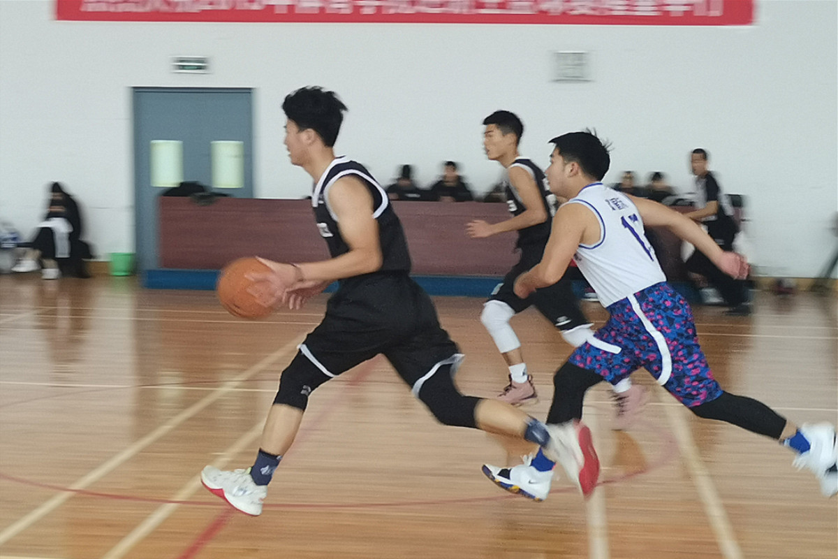 在篮球馆的西场是1703对战1704。1703班凭借高超的球技和队员之间默契的配合,以56:23的优秀的成绩远远领先1704班。东场是1705对战1904。双方对战激烈精彩,比分也是不相上下,最终1705班以46:44赢得比赛。