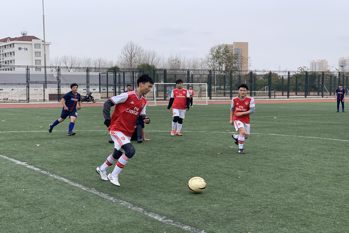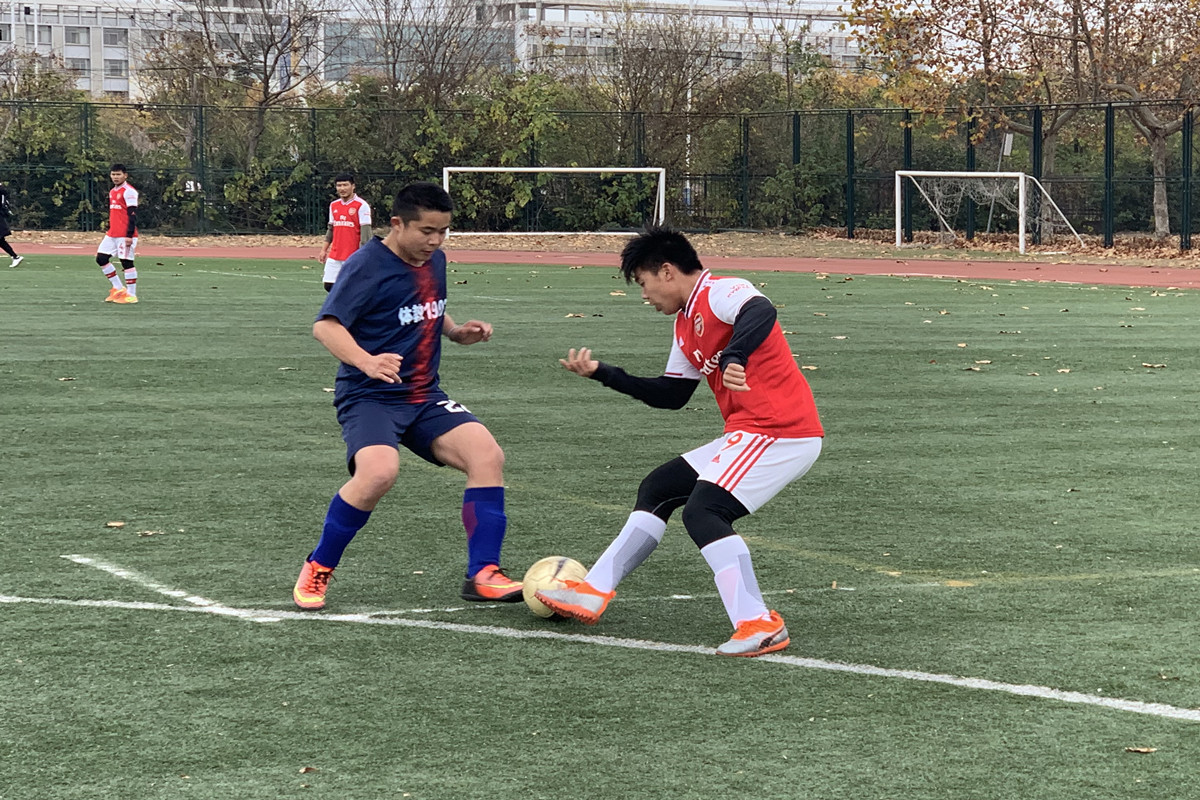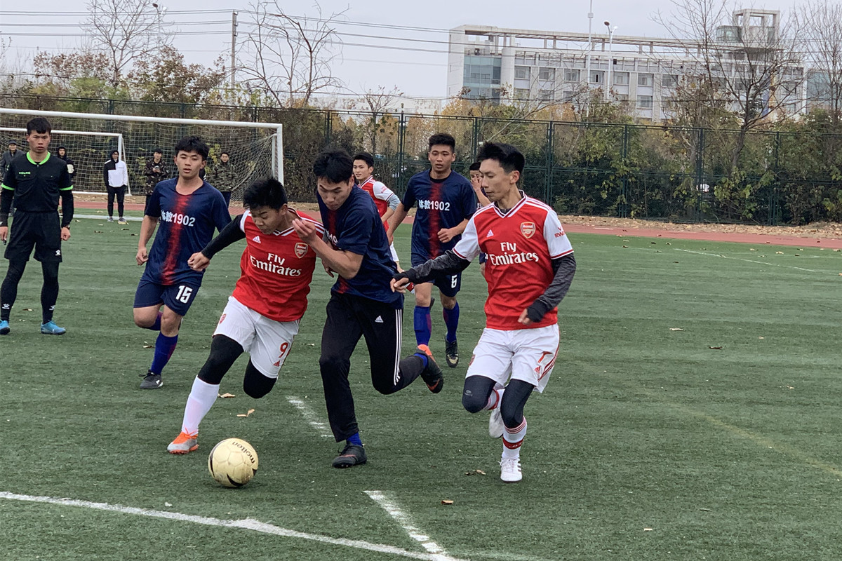 寒风依旧是十一月份的主打曲,但在球员们雄壮身姿的衬托下,显得微弱不击。球员们在绿茵场上,挥洒着汗水,无处不散发着活力。1901对战1902班,双方队员奋力拼搏,都在为彼此的战队努力。1901班全员配合,像一匹匹脱缰的野马,在赛场上奔跑,并在精准的射门下以2:0的成绩赢得比赛。