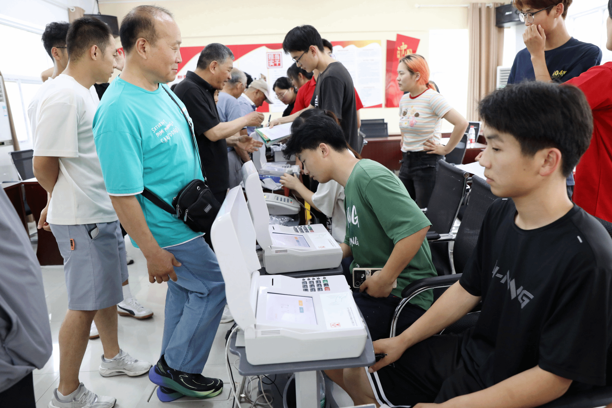 在社区活动中心,老员工们为老党员量血压、体重、测肺活量、灵敏度和力量,利用全新的体质健康测评系统为老党员们进行了体质健康评估,并立足健康游戏训练方式开展趣味体育知识普及和传播。