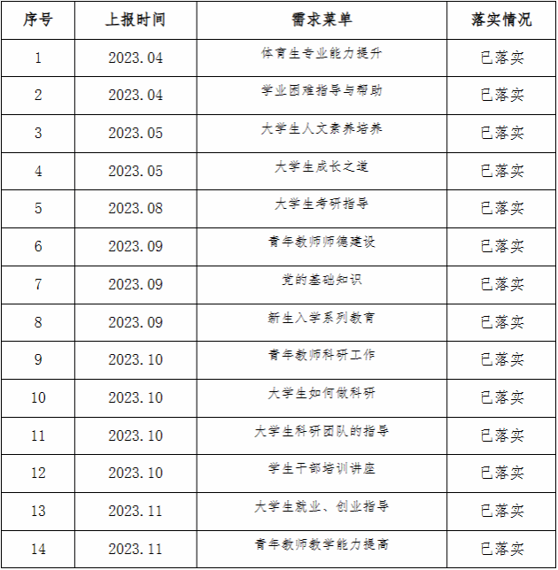 必一运动bsport体育青年师生“需求菜单”和校内外老同志“资源菜单”情况统计表